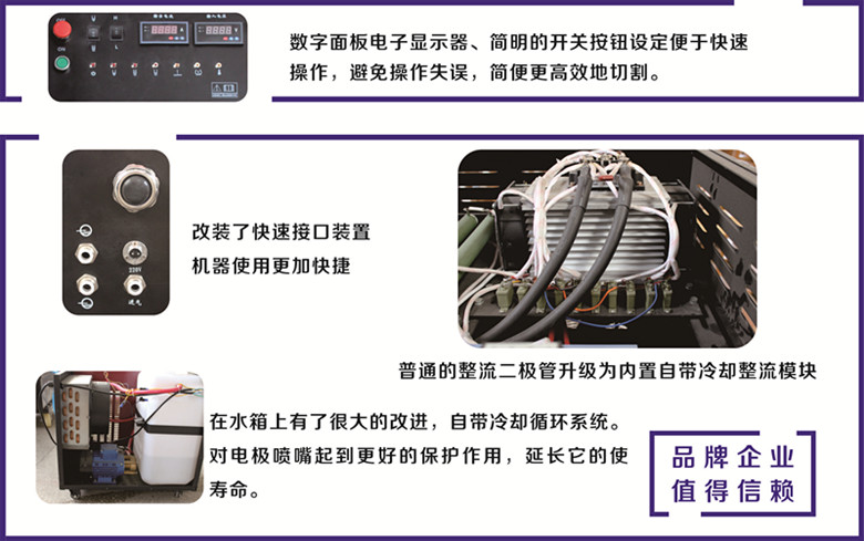 4.自帶冷卻水箱;整流模塊同時(shí)也自帶冷卻;經(jīng)久耐用,提供生產(chǎn)效率;更提高了電極噴嘴的使用壽命。